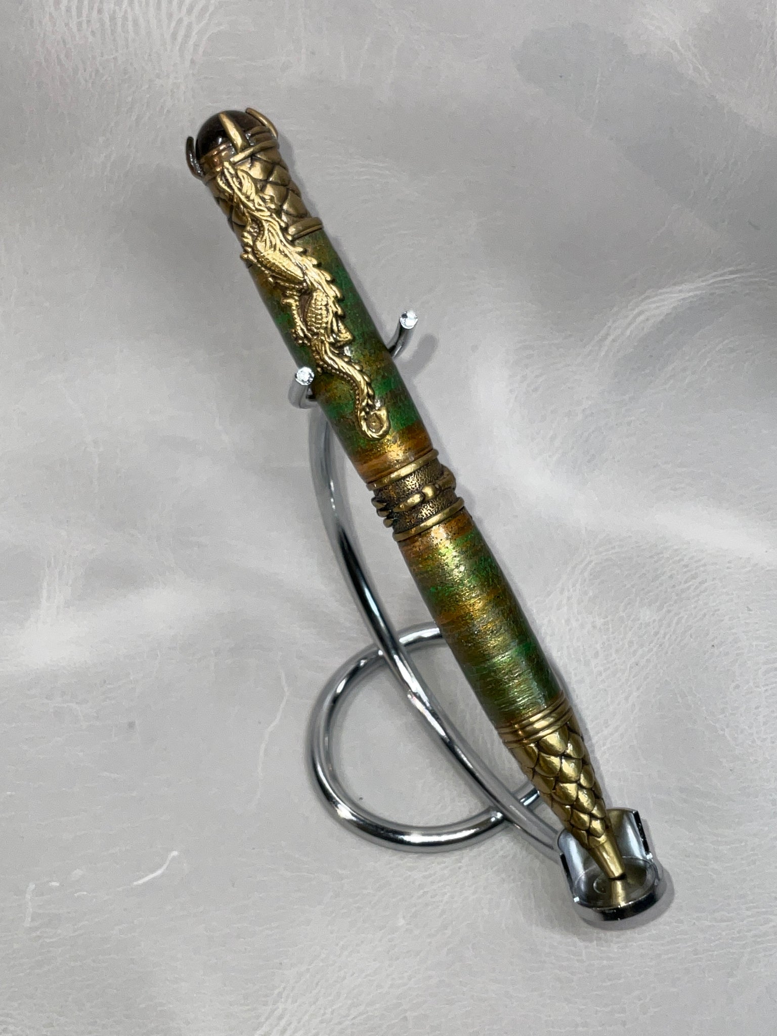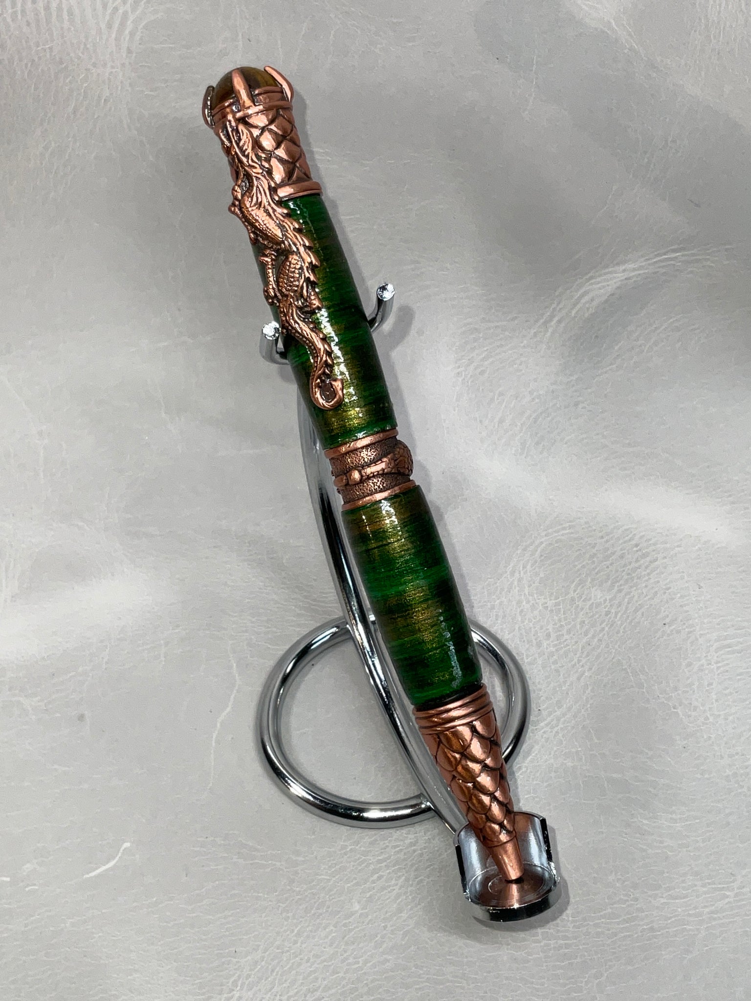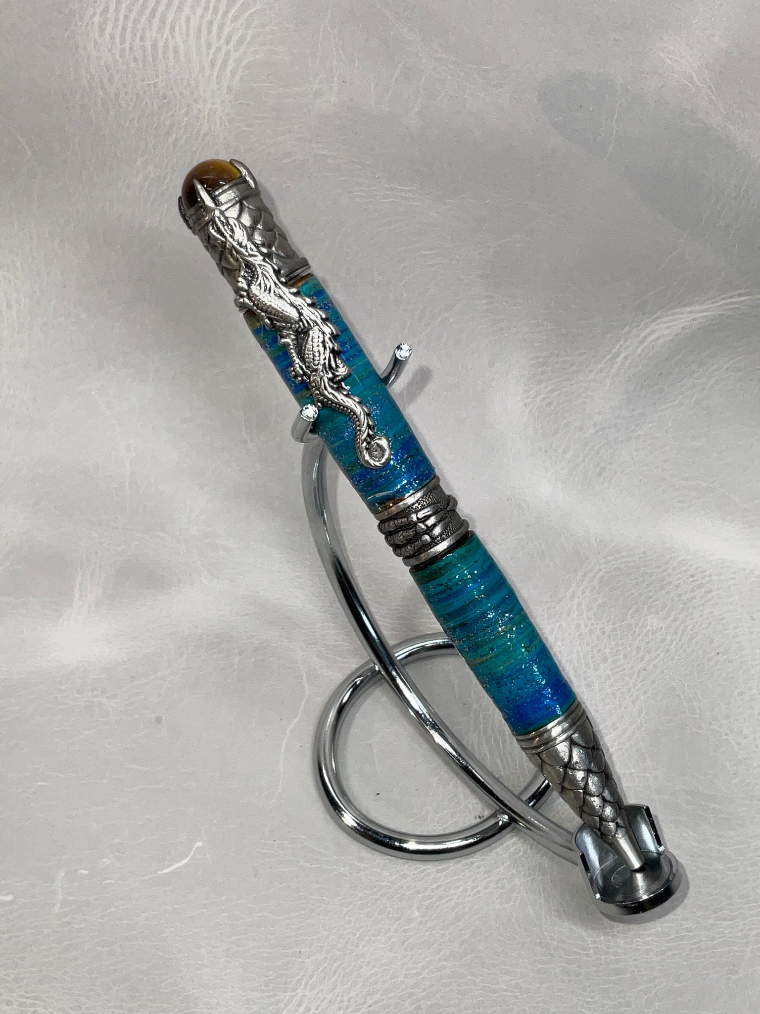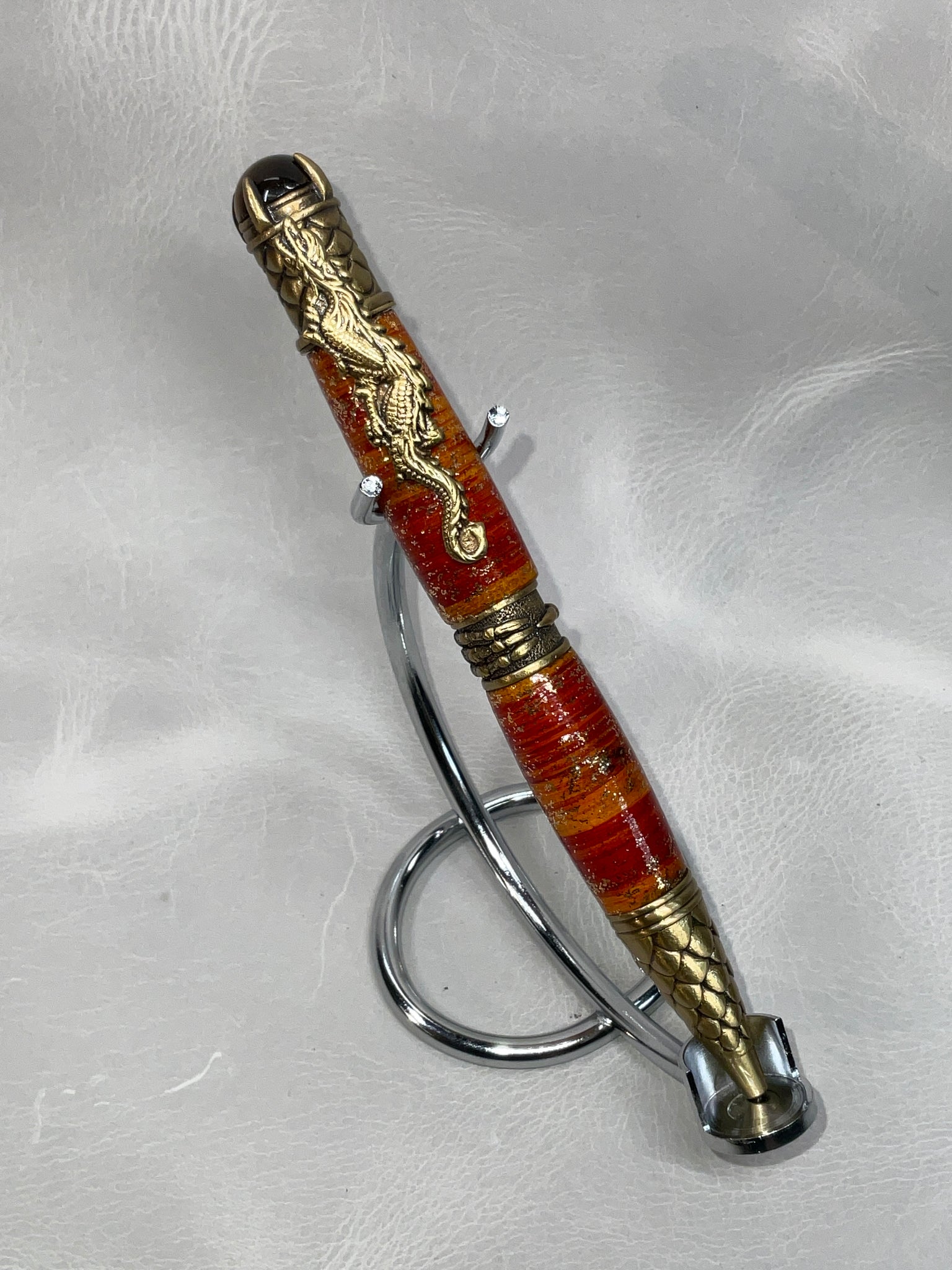 Fantasy fans, we have the perfect pen for you! This dragon pen may be just what you need. Notice the scales at both ends, a claw around the center, and a dragon shaped clip.