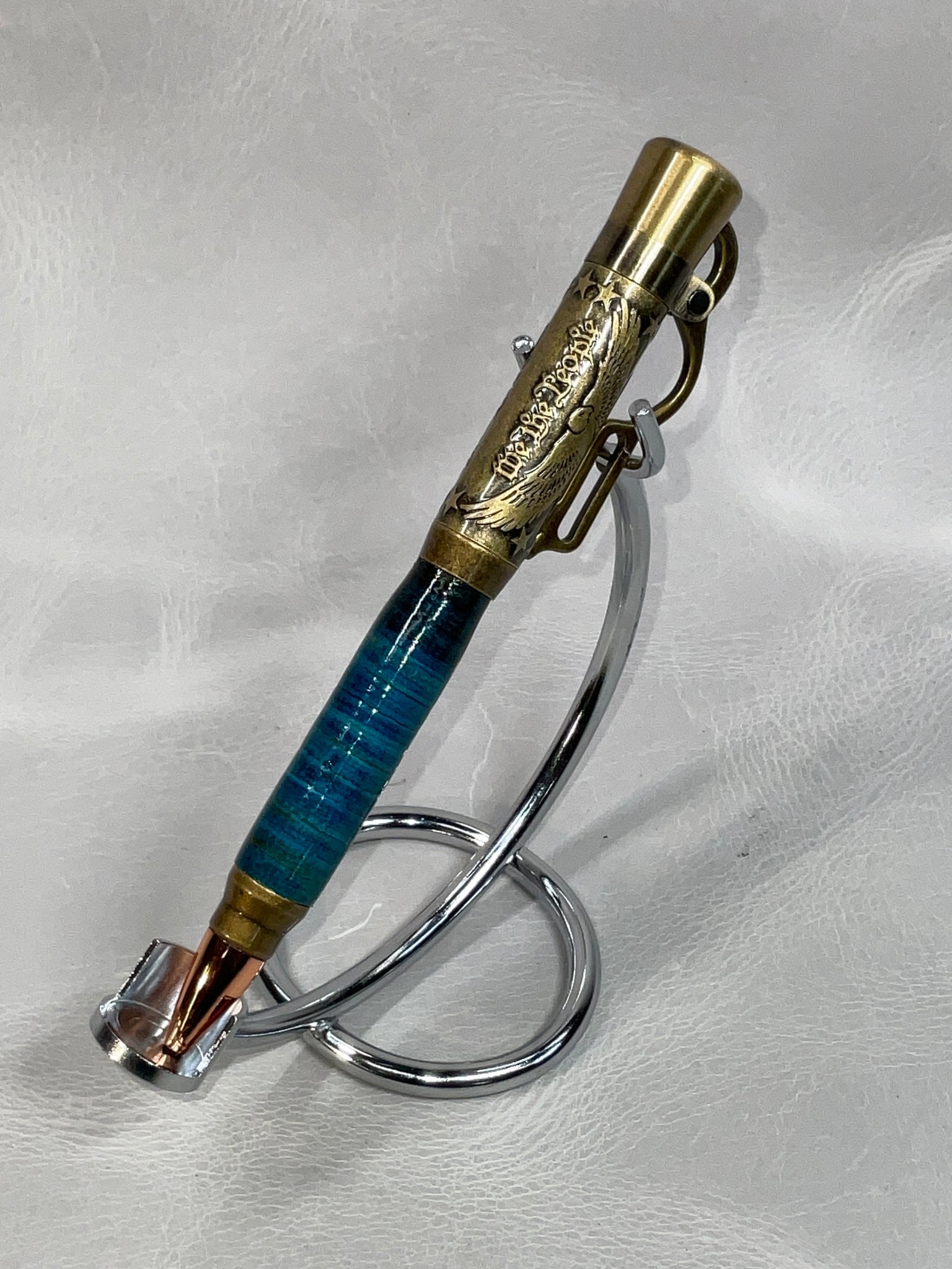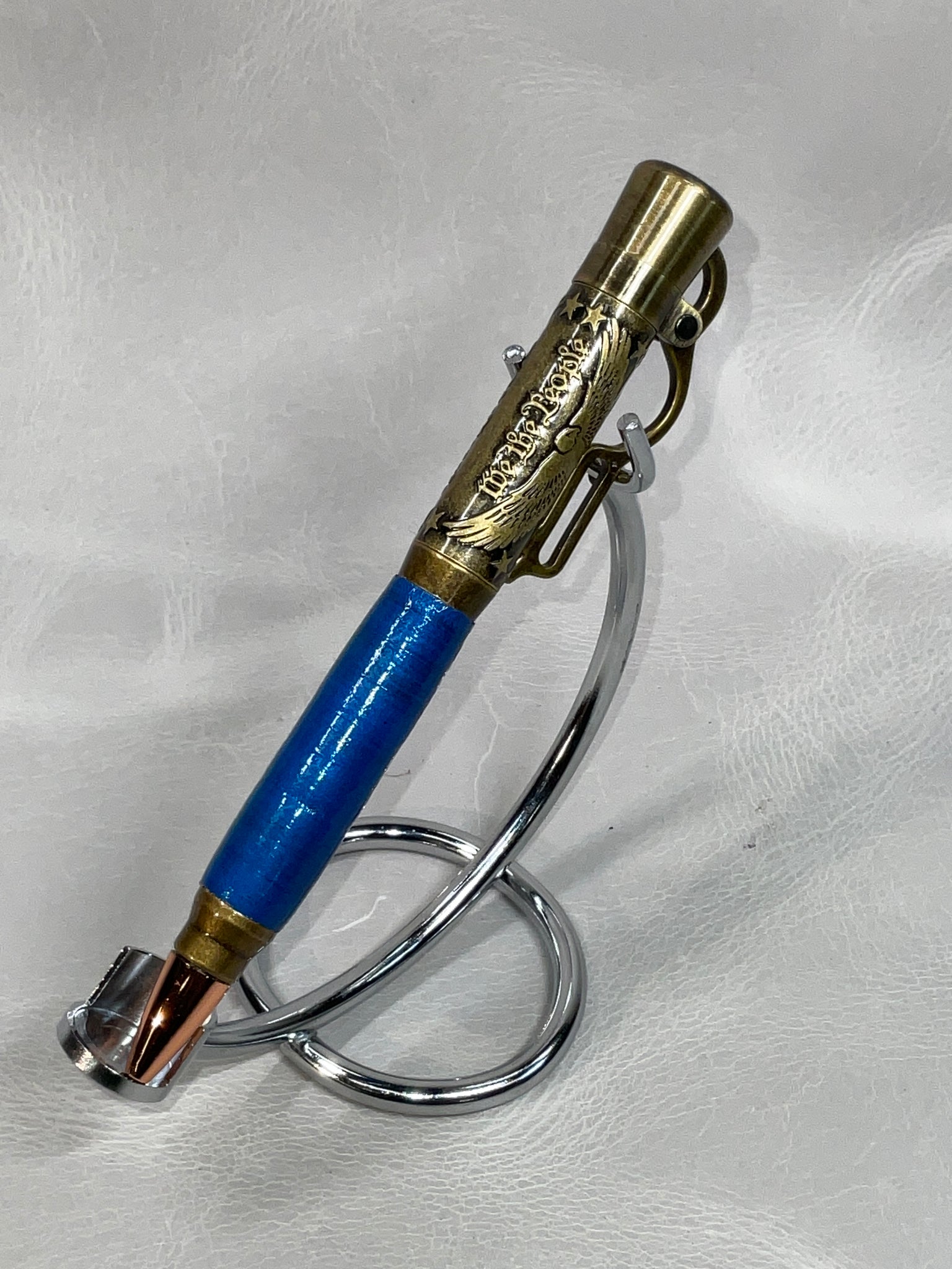This pen has a lever-action mechanism and says We The People with an eagle.